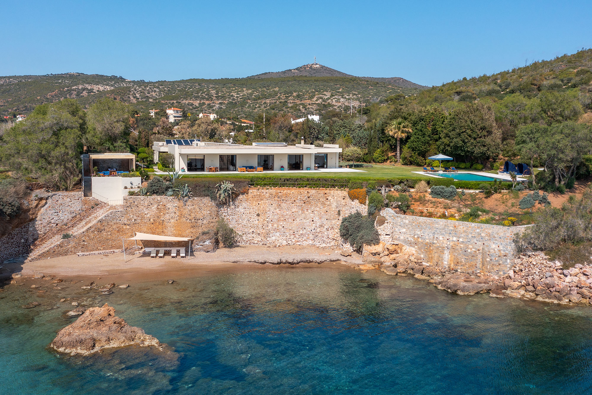Set along a quiet coastal road, this grand 1970?s summer residence exudes timeless elegance and privacy. Once hosting prominent politicians and celebrities, it features a private sandy beach, a large pool, and extensive lawned gardens. Wonderfully maintained, it combines comfort with serenity, offering a rare coastal retreat. Located 5 minutes from the Temple of Poseidon, 15?25 minutes from nearby villages with shops and restaurants, and just an hour from central Athens, this estate is one of Attica?s most distinguished private homes, clearly built for living, not rental.